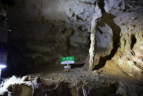 ↑大黑柱:鐘乳石和石筍相接後,成為好像是支撐天花板的石柱。據說這根柱子形成於 15,000 多年前。