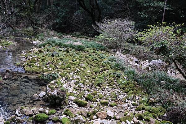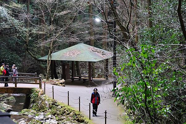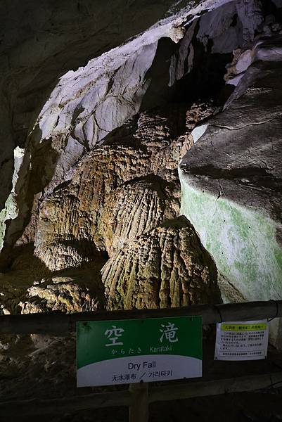 ↑空滝: 旁邊告示牌將滝譯為waterfall(瀑布),空滝為石灰岩形成的石灰瀑布。