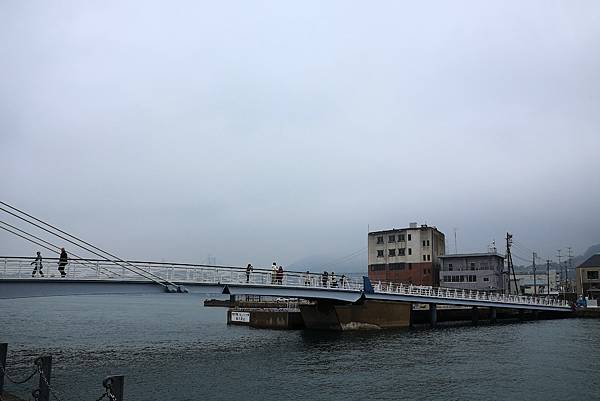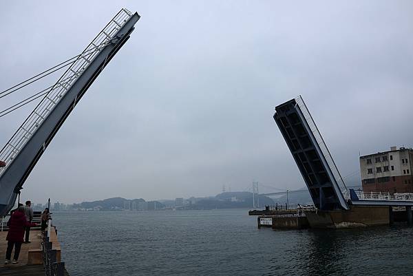 吊橋一天吊起6次,在橋上可以望見對岸的下關和關門橋。